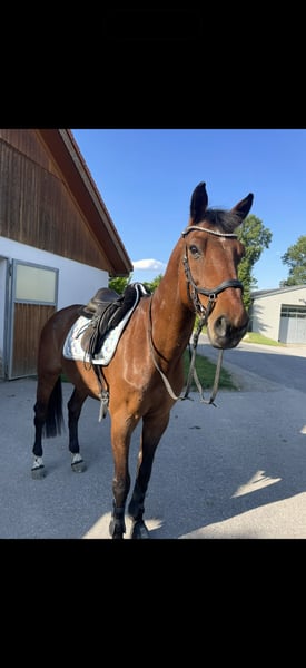 Schweren Herzens muss ich mich von meinem 17-jährigen Oldenburger Wallach trennen. Mit einem Stockmaß von ca. 1,65 m ist er sowohl für Erwachsene als auch für Kinder geeignet. Corradino ist trotz seines fortgeschrittenen Alters fit und für Einsteiger ideal. Er hat eine solide Grundausbildung genossen und ist lektionensicher bis L Dressur. Springen ist seine große Leidenschaft. Da er sehr rücksichtsvoll und unaufwendig aber mit geübter Technik springt ist er vor allem für Einsteiger sehr geeignet. Entspannte Ausritte alleine oder in der Gruppe genießt er sehr und ist auch hier immer brav und anständig. Im Umgang zeigt er sich menschenbezogen und unkompliziert. Selbstverständlich ist er regelmäßig entwurmt und geimpft worden und ist anständig beim Schmied und beim Verladen. Durch seine Erfahrung und Routine ist er ein angenehmer und verlässlicher Partner für Freizeitreiter, die ein zuverlässiges Pferd suchen. Er wird ausschließlich in ein gutes und passendes Zuhause abgegeben, in dem er seinen endgültigen Platz findet. Standort: 2490, Ebenfurth Bei Interesse gerne melden. +43 660 215 1692