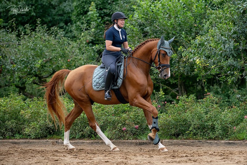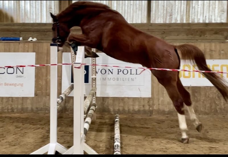 **Sales Advertisement: Oldenburg Gelding** For sale is a beautiful Oldenburg gelding, born in 2022. With his striking chestnut color and a height of 166 cm, he is not only an eye-catcher but also a promising talent for dressage. Skydancer is professionally started under saddle and comes directly from a dedicated breeding facility. This young gelding impresses with his quality of movement and friendly disposition. He is well-mannered, easy to handle, and is already showing initial progress in his training. Ideal for riders looking for a promising dressage horse and who enjoy working together. He is suitable for both amateur and ambitious riders and offers great potential for the future. If you are interested or have any further questions, please feel free to contact me. Viewings are possible by appointment. Don't miss this opportunity!
