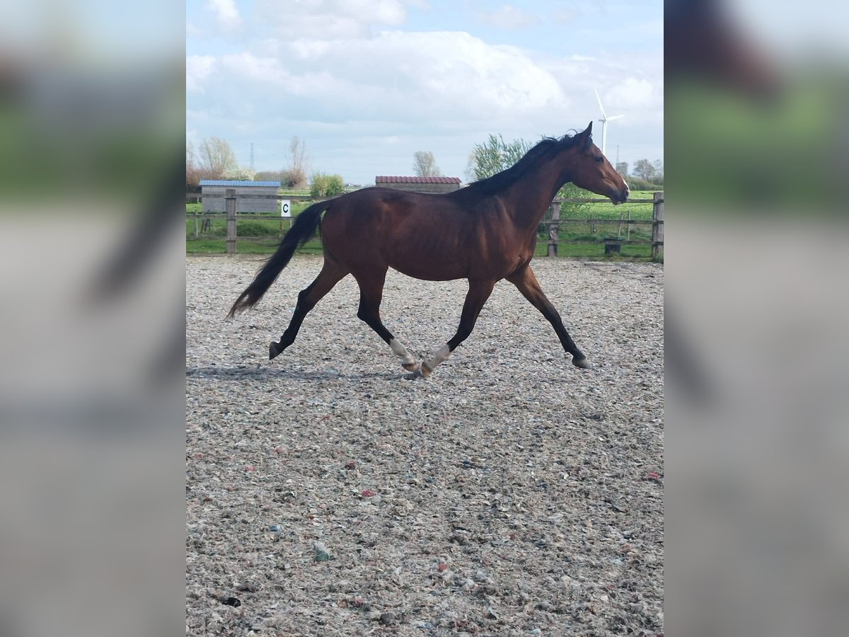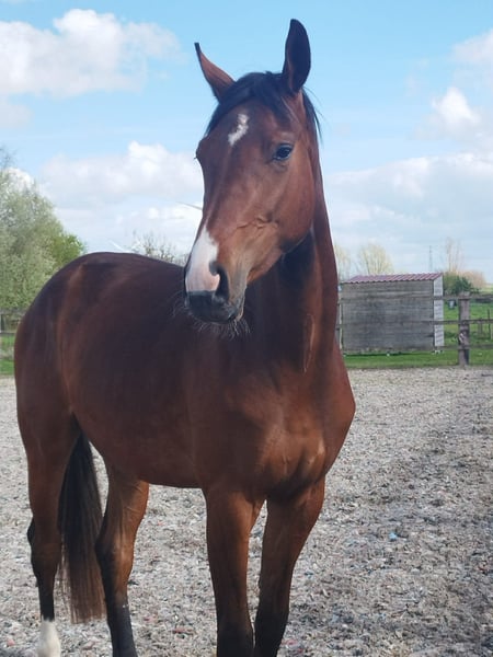 Nous vous présentons Sunshine de Goldy, élégant hongre Oldenbourg, bai, 3 ans, toisant actuellement environ 1m68. Sunshine est issu d’une lignée dressage moderne et confirmée. Il est par San To Alati, étalon reconnu pour transmettre force, élasticité et qualité de galop, avec une excellente mécanique des postérieurs et une vraie aptitude au rassembler. Ses produits se distinguent par leur équilibre naturel, leur locomotion ample et leur mental coopératif, recherché pour la formation vers le haut niveau. Sa mère est issue du célèbre Dante Weltino, performer international au plus haut niveau en Grand Prix, connu pour sa régularité, sa souplesse et son exceptionnelle qualité de trot. Dante Weltino transmet fréquemment une très bonne connexion au cavalier, un dos solide et une capacité à progresser avec méthode jusqu’aux exercices de haute école. Cette combinaison San To Alati x Dante Weltino apporte un mélange intéressant de cadre, d’énergie maîtrisée et de fonctionnalité, avec une vraie projection vers le dressage sportif moderne. Sunshine est un jeune cheval moderne, avec du cadre, de la taille et une vraie présence naturelle. Son modèle harmonieux et sportif laisse entrevoir une belle projection pour le dressage, tout en conservant l’équilibre et la fonctionnalité recherchés chez un cheval d’avenir. Mais au-delà de son physique, c’est son mental qui marque immédiatement. Manipulé quotidiennement depuis sa naissance, Sunshine a grandi dans un environnement structuré et attentif. Il est très gentil, respectueux, proche de l’homme et particulièrement agréable au quotidien. Il adore qu’on s’occupe de lui, recherche le contact et se montre volontaire dans toutes les situations nouvelles. Il reste attaché en stalle de préparation sans difficulté, monte facilement en camion et voyage sereinement. Il vit accompagné et présente un comportement stable et équilibré. Encore en croissance, il n’est pas débourré et constitue aujourd’hui un véritable projet de valorisation ou d’élevage. Son modèle, son cadre et sa locomotion offrent une base intéressante pour un futur cheval de dressage, à construire avec méthode et progressivité. Mental et profil cavalier Sunshine est un jeune cheval particulièrement bien dans sa tête, avec un mental stable et coopératif. Très gentil, proche de l’homme et respectueux, il a été manipulé avec soin depuis son plus jeune âge, ce qui le rend aujourd’hui facile dans toutes les situations du quotidien. Curieux et volontaire, il aborde les nouveautés avec sérénité. Encore non débourré, il conviendra à un cavalier ou professionnel capable de l’accompagner dans sa formation avec méthode, progressivité et cohérence. Pour quel projet ? Sunshine conviendra particulièrement : • à un professionnel souhaitant valoriser un jeune cheval avec de bonnes bases • à un amateur éclairé et encadré désirant investir dans un projet d’avenir • à un projet orienté dressage sportif, avec une construction progressive Il s’agit d’un cheval à construire, offrant une base saine (mental, manipulation, modèle) pour un projet structuré sur le moyen / long terme. Un jeune cheval attachant, équilibré et bien préparé pour aborder la suite de son parcours avec sérénité.