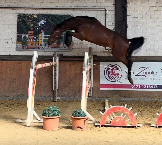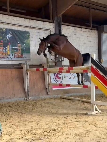 For sale is my dear Darwins Filius. I purchased Darwin as a weanling directly from the breeder. His mother, who was successful up to the S class, has already produced several offspring who are also successfully competing at the highest level. He has been in my possession since then and has been gently introduced to all tasks. Whether it's groundwork or daily grooming – he does everything willingly, always showing interest, attentiveness, and a desire to learn. Darwin is exceptionally well-behaved in handling, shows no bad habits or problems, and can be easily managed at any time. He has not been sick or injured so far. A few months ago, he was professionally started under saddle, and since then I have been riding him two to three times a week myself. He is already responding well to the aids and has completed his first jumps under saddle. Since I am still at the beginning of my riding education and consider myself a weak rider, I have decided, after careful consideration, to place him in suitable, supportive hands. He brings immense joy and is developing excellently, but I believe he deserves a more experienced rider who can further develop his potential. Darwin shows great talent in free jumping, is capable, and has a good sense of overview. Current X-rays from this year are available without any impairing findings and can be sent upon request. All in all, Darwin is a fantastic horse with a wonderful character, excellent temperament, and outstanding potential. In the right hands, I see a promising future for him, whether as an ambitious athlete or as a loving leisure partner.