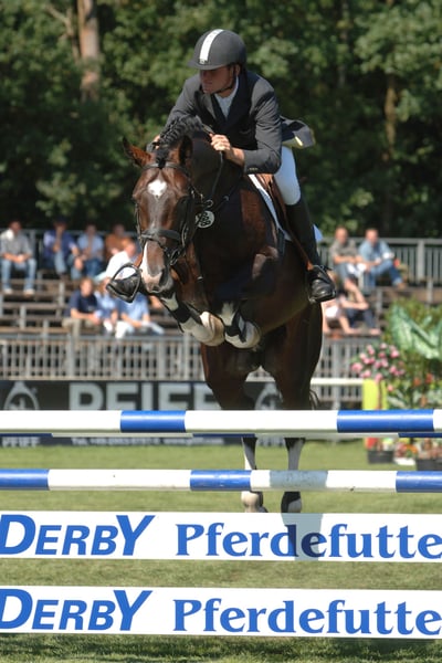 Schöner geht es nicht! Dunkelschokoladenbrauner, enorm bewegungsstarker und sprunggewaltiger Cafe au lait Nachkomme wie gemalt! 4x weiß mit Blesse, zieht er schon jetzt durch seine Erscheinung alle Blicke auf sich. Hier reift ein ganz besonderes, doppelveranlagtes Nachwuchspferd heran. Seine Mutter (Bretton Woods x Zeus) ist selbst in Jungpferdeprüfungen Springen u. Gelände mehrfach platziert gewesen und außerordentlich bewegungsstark. Früh geboren (im Januar bereits 3jährig) ist er jetzt schon außerordentlich weit entwickelt und wird dementsprechend zukünftig in Jungpferdeprüfungen immer im Vorteil sein. Derzeit wird er longiert und langsam angeritten. Der Vater Cafe au lait, Siegerhengst seiner Körung, HLP Sieger und BuCha Finalist, war selbst siegreich in der schweren Klassen und hat sich in den letzten Jahren einen Namen als Doppelvererber mit Spitzennachzucht gemacht. So wurde Cafe's Casimir" (Cafe au lait x Calido x Grannus) gefeierte Preisspitze der Oldenburger Eliteauktion, ist bereits in jungen Jahren Seriensieger in S- Dressuren und international Intermediaire I siegreich. Stute Kasselmanns Cafe's Caletta (Cafe au lait x Calato) ist ebenfalls bereits S-Dressur platziert und international Grand Prix siegreich. Cafe's Matts (Cafe au lait x Don Frederico) wurde zweitteuerstes Dressurpferd der Oldenburger Summer Mixed Sales. Weitere Jungpferde aus springbetonten Mutterstuten sind bereits mehrfach in Dressurpferdeprüfungen A bis M platziert und sind bemerkenswert bewegungsstark und kopfklar. Dass die Cafe au lait Nachkommen im Springsport bis zur schweren Klasse überzeugen steht außer Frage, so zum Beispiel aus unserer Zucht: Cafe's Champus: gekört, Vizeweltmeister der jungen Pferde Cafe Junior: gekört, international erfolgreich in Saudi Arabien Cafe's Columbo: gekört und sporterfolgreich in Frankreich Cafe's Don Rubin: gekört, 4jährig als jüngstes Pferd Bronze beim Dobrocker Deisterchampionat, aktuell qualifiziert zum Bundeschampionat in seiner 2. Springpferde-M! Stationiert bei Paul Schockemöhle zeugte Cafe au lait schon etliche international erfolgreiche Springpferde, u.a. "Royce", siegreich im FEI CSI5* $500,000 Rolex Grand Prix Wellington. Cafe au lait selbst war unter Philipp Weishaupt Bundeschampionatsfinalist und ist bis S*** Springen erfolgreich gewesen, ist aber auch mit drei spektakulären GGA ausgestattet und dressurmäßig auf S Niveau ausgebildet worden. Unsere Fohlen bekommen täglich Mineralfutter und Fohlenstarter, regelmäßig EQUISTRO Haemolytan und Ipaligo Foal, Wurmkuren und Schmied sind natürlich ebenfalls selbstverständlich. Auch die Muttertiere bekommen die ganze Trächtigkeit hindurch spezielles Stutenfutter, Saftfutter, Leinöl sowie Heu ad libitum. So sind unsere Zuchtstuten und ihre Nachzucht stets bestens versorgt und im top Gesundheitszustand! Weitere Fohlen und Nachwuchspferde aus eigener Zucht auf Anfrage. Ein Teil ist unter den anderen Anzeigen zu finden. Es stehen auch immer wieder einige tragende Zuchtstuten zum Verkauf. Cafe`s Bumblebee verfügt bereits über aktuelle sehr gute Röntgenbilder. Videoanfragen vorab ausschließlich via WhatsApp möglich.