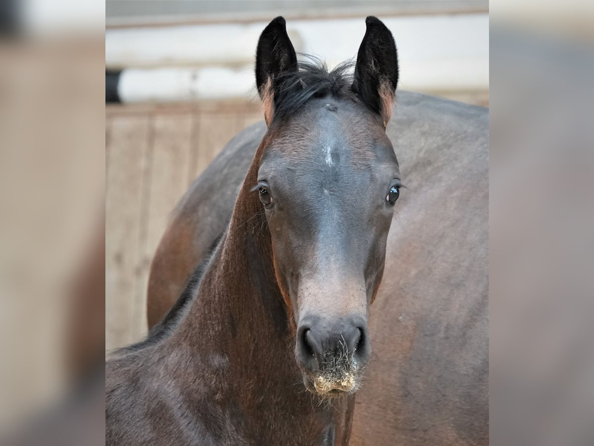 Hermoso potro negro-marron con 4 medias blancas, nacido a finales de Marzo 23 por For Romance x Desperados x Rohdiamant. Es muy sociable y confiado. Varios hermanos de la madre muy exitosos hasta Intermediaire I. La madre tambien ha tenido exito en pruebas para caballos jovenes de equitacion y doma antes de criar caballos de 3 y 4 años. La yegua también está a la venta debido a la descendencia. Está de nuevo preñada de For Romance Video del hermano mayor: https://youtu.be/YlZ6QBI5hfk