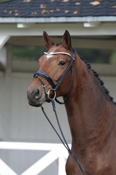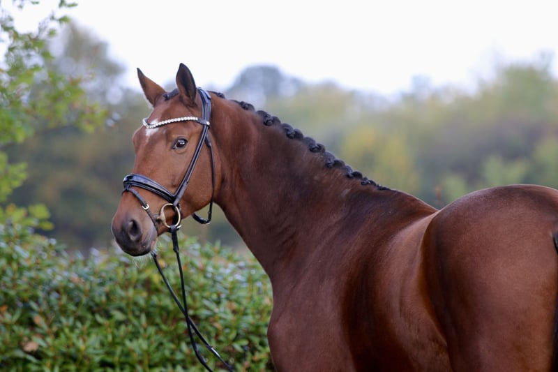 For sale: a promising young Oldenburg gelding – ideal for dressage trainers and aspiring riders We are offering a talented Oldenburg gelding, born in 2022. With his elegant, dark bay coat and a height of 172 cm, he combines beauty and stature. This young gelding is well-suited for dressage and already demonstrates significant talent and willingness to learn. Born and raised with care on our farm, he is healthy and has recently been lightly backed. He shows great potential for further training. In handling, he is truly a sweetheart and has had no negative experiences so far. Equipped with a very good canter and an outstanding walk, he still needs time to adjust to his large frame. Once he does, he will be a real diamond in the rough. I am happy to provide more information and a personal impression. A horse full of potential, waiting for a future dressage career – a fantastic opportunity for ambitious riders!