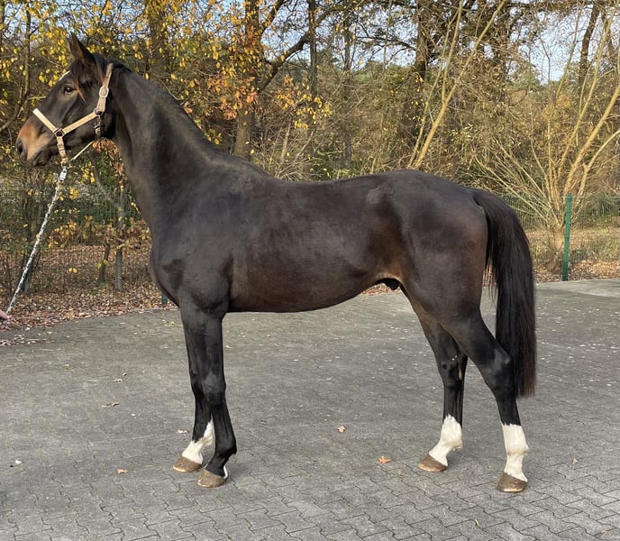 Toller 3-jähriger dunkelbrauner Oldenburger Wallach mit einer super Abstammung. Er wurde vor kurzem von der Weide reingeholt, ist super lieb und klar im Kopf. Mit drei sehr guten GGA ausgestattet und 1,72m groß. Weitere Infos/ Bilder gerne nach telefonischen Kontakt.