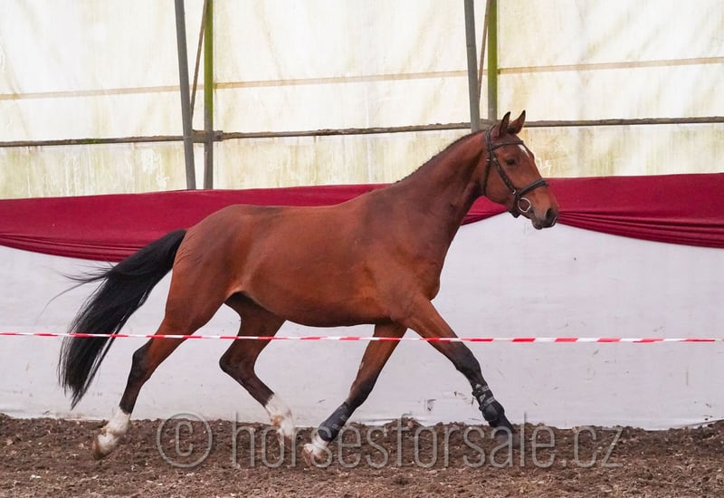 CONDIADOR - tolles Nachwuchspferd - Conquistador x Diarado Condiador ist ein interessanter Youngster mit bester Abstammung und gutem Sprung, direkt vom Züchter. Beim Freispringen zeigt er tolle Einstellung, einwandfreie Technik am Sprung, sowie sehr gute Bewegung. Condiador wurde vor kurzem angeritten, kann schon selbstständig traben und galopieren mit dem Reiter, macht gerade erste Sprünge unter dem Sattel. Gesund, korrekt, klar im Kopf, RTG-Bilder vorhanden. Im Moment hat er 161cm, wird aber sicher noch ein paar CM machen, seine Mutter hatte 172cm. Preis: 13.000€ VHB, Mehr Infos gerne unter +420 602 862 723 (WhatsApp) https://youtu.be/0S_-pbMuW3I https://youtu.be/mGkLzhOc9JA https://youtu.be/x0gi-gnIjgw Standort: 397 01 Pisek, Tschechien, Transport kann organisiert werden. *** weitere Pferde unter www.verkaufspferde.cz ****