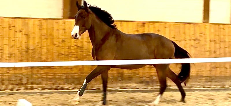 Bildhübsches, modernes Nachwuchsspringpferd von Dourkhan Hero Z (GCT 1.60m mit Christian Ahlmann) x Stakkato x Drosselklang II. Seine Großmutter von Drosselklang II war international CSI*** erfolgreich. Dourkati ZD ist 2022 geboren, ist sehr rittig und überzeugt bereits jetzt durch seine außergewöhnlich gute Einstellung. Er zeigt sich stets unkompliziert, kooperativ und sehr menschenbezogen. Unter dem Reiter ist er angenehm zu sitzen und absolut amateurfreundlich. Sein Charakter ist aussergewöhnlich und seine Farbe macht ihn sehr besonders.. Seine Abstammung vereint modernes Springblut mit bewährten Leistungslinien und bringt damit beste Voraussetzungen für eine sportliche Zukunft. Aufgrund seines Charakters eignet er sich sowohl für ambitionierte Amateure als auch für Profis, die ein unkompliziertes Nachwuchspferd oder einen Hunter suchen. Ein sehr typvoller Wallach mit Charme, Qualität und Perspektive. https://www.zanddynasty.de/sportpferde/dourkati-zd www.zanddynasty.com Wir züchten mit Stuten bester Genetik in Anpaarung mit sporterfolgreichen Hengsten, wie Baloubet du Rouet, Casall, Clarimo, Cornet Obolensky, Diamant de Semilly, Dominator 2000 Z, Dourkhan Hero Z, Eldorado van de Zeshoek, Kannan, Nabab de Reve, Quidam de Revel und Taloubet Z und haben daraus Nachwuchspferde, von Fohlen bis zu erfolgreichen Sportpferden. Bei Interesse melden Sie sich gerne +49.173.3074429 oder info@zanddynasty.com.