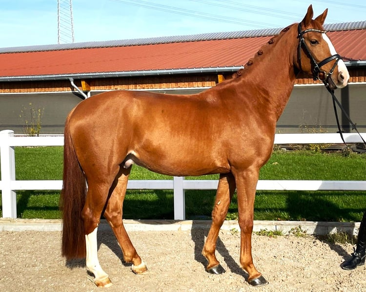 Verkaufe eleganten Oldenburger Wallach – ideal für ambitionierte Amateurreiter Dieser charmante Fuchs-Wallach wurde im Jahr 2021 geboren und beeindruckt durch sein freundliches Wesen sowie seine beeindruckende Erscheinung. Mit einem Stockmaß von 164 cm (Endmass ca. 67/68) bietet er die perfekte Größe für ambitionierte Reiter, die Wert auf Qualität und Charakter legen. Er hat ein top Pedigree. Grossmutter läuft aktuell S Dressur und zu dem gibt es aus der 3. Mutter zwei Olympiapferde. Sein ausgeprägtes Talent im Dressursport macht ihn zu einem vielversprechenden Partner für den nächsten Schritt in der Ausbildung. Der Oldenburger überzeugt durch seine gute Bewegungsqualität, Lernbereitschaft und sein angenehmes Temperament. Er will immer auf's neue gefallen und alles richtig machen. Bei Interesse oder für weitere Informationen stehe ich gerne zur Verfügung. Ein Kennenlernen lohnt sich!