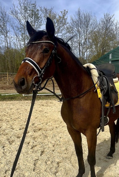 - Oldenburger - Wallach - 1,65m ca. - V. Donier x Dream Boy - Totilas, Vivaldi, De Niro, Donnerhall, Gribaldi - halfterführig, longiert, kennt Trense und Sattel. - ist artig in den Anhänger gestiegen. - beim Schmied ist er noch skeptisch, aber nicht böse. - VB nur für Schnellentschlossene Der kleine Mann ist sehr unbeeindruckt und unerschrocken von neuen Erfahrungen. Am dritten Tag hat er schon direkt den Sattel ohne Probleme angenommen und akzeptiert. Genauso das Alleine sein im Stall zum Putzen und Satteln. Er ist für mein Empfinden angenehm und arbeitet gut mit. Er ist sehr freundlich, neugierig, aufgeschlossen und genießt den menschlichen Kontakt sehr. Von seinem Fundament und seiner Art, kann ich ihn mir gut als zukünftiges Schulpferd vorstellen. Genauso auch als solides Freizeitpferd. Der kleine Mann wirkt auf uns gesund und munter! Der Rücken ist unempfindlich und die Beine sind klar. Eine AKU kann jederzeit von Kaufinteressenten in Auftrag gegeben werden. Der Wallach gehört nicht mir. Er wird von mir im Auftrag ausgebildet und inseriert. Mit der weiteren Ausbildung steigt der Wert des Pferdes. Ein persönliches Kennenlernen ist ausdrücklich erwünscht.