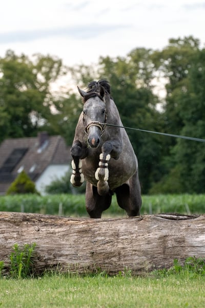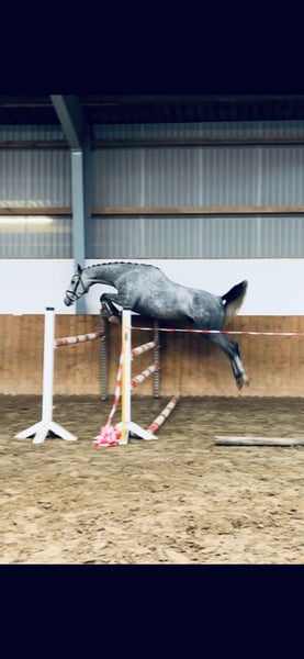Aus beruflichen Gründen der Besitzerin sucht dieser Herzensbrecher ein neues Zuhause. „Hicksteads Prinz“ ist ein 4 jähriger selbstgezogener Wallach welcher der Besitzerin von Tag eins viel Freude bereitete. Sein Vater „Hickstead White“ erfolgreich bis 160 Grand Prix unter Jörne Sprehe ist sicherlich jedermann bekannt Mutter „Soraya“ selbst sporterfolgreich bis 125 verholf ihrer Besitzerin zu vielen Schleifen im Springsport. Prinz wurde Ende 3 jährig kurz angeritten und durfte anschließend weiter zu einem stattlichen Kerl heranwachsen. Seit Sommer diesen Jahres ist er wieder in regelmäßiger Arbeit und besticht täglich mit Leistungsbereitschaft, Charme und ganz viel Arbeitseinstellung! Er kennt das Reiten in allen 3 Grundgangarten und hat bereits erste kleine Sprünge unter dem Sattel absolviert. Selbstverständlich ist Prinz Schmiede- und Verladefromm (aktuell läuft er problemlos Barhuf) Aktueller Befundloser Röntgentüv inkl. Rücken vorhanden