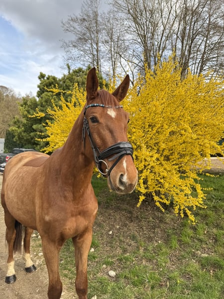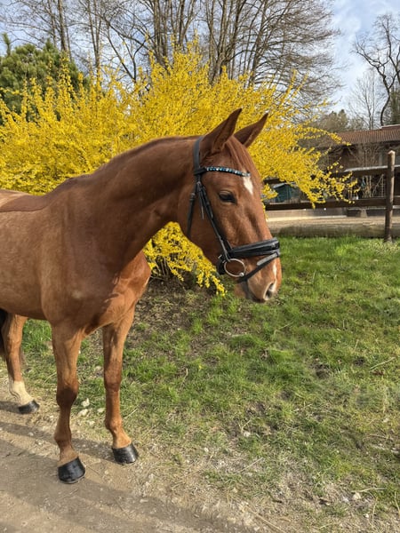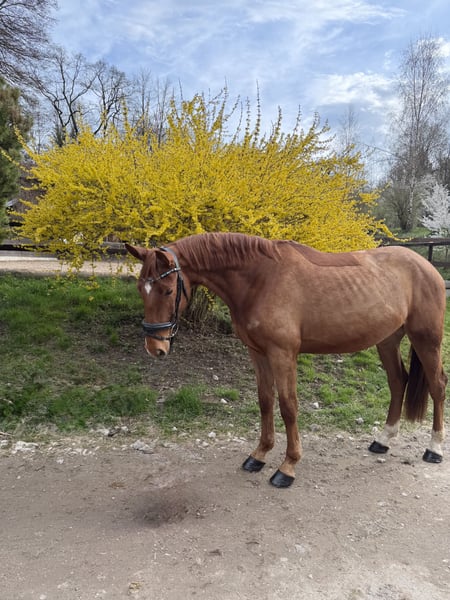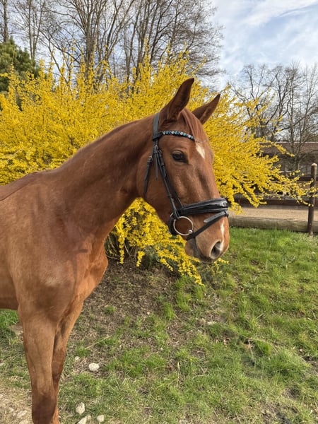 Coco ist ein 4-jähriger Youngster, der nicht nur durch seine Optik, sondern vor allem durch seinen einwandfreien Charakter überzeugt. • Name: Coco • Alter: 4 Jahre • Größe: ca 167 • Farbe: Fuchs mit schöner Blesse • Ausbildungsstand: Altersgemäß ausgebildet, zeigt sich bereits sehr talentiert am Sprung. Coco ist für sein junges Alter bereits außergewöhnlich brav und abgeklärt. Er ist ein Pferd, das seinem Reiter stets gefallen möchte und durch seine unkomplizierte Art im täglichen Umgang besticht. Brav beim putzen, satteln und Hufschmied. Fein an den Hilfen, Sitzbequem und stets bemüht alles richtig zu machen kennt er dressurmäßige Arbeit in der Halle und auf dem Reitplatz. Hier kennt er bereits auch Stangenarbeit und hat die ersten Sprünge unter dem Reiter absolviert. Er zeigt am Sprung viel Übersicht, eine gute Manier und die nötige Vorsicht. Er macht bereits jetzt einen tollen Job und verspricht ein ideales Pferd für den Springsport oder den ambitionierten Freizeitreiter zu werden. Coco vereint die Crème de la Crème der internationalen Springpferdezucht: Er stammt aus dem renommierten Springpferdezuchtverband Oldenburg-International (OS) und vereint absolute Legenden: • Vater: Continental Blue ->Erfolgreich in internationalen 1,60m-Springen. ->Sohn des Conthargos, einem der gefragtesten Vererber der Gegenwart (bekannt für Rittigkeit und Springvermögen). ->Mütterlicherseits über den Jahrhunderthengst Chacco-Blue gezogen, der jahrelang die Weltrangliste der Springvererber anführt • Mutter: Top Gun -> Geht zurück auf den Ausnahmehengst Toulon (v. Heartbreaker), der selbst international auf höchstem Niveau (GCT) erfolgreich war. ->Die Mutterlinie führt über Argentinus, einen der bedeutendsten Stempelhengste der deutschen Zucht, der sowohl Weltklasse-Springer als auch Dressurpferde lieferte. Er ist bereit, mit seinem neuen Besitzer gemeinsam zu wachsen und die ersten Schleifen zu sammeln. Coco ist vorne beschlagen, aktuell durchgeimpft, war beim Zahnarzt vor dem Anreiten und selbstverständlich entwurmt. Das Pferd steht in 82256 Fürstenfeldbruck und kann jederzeit Probe geritten werden. Weitere Fotos und Videos per WhatsApp unter 01623943092