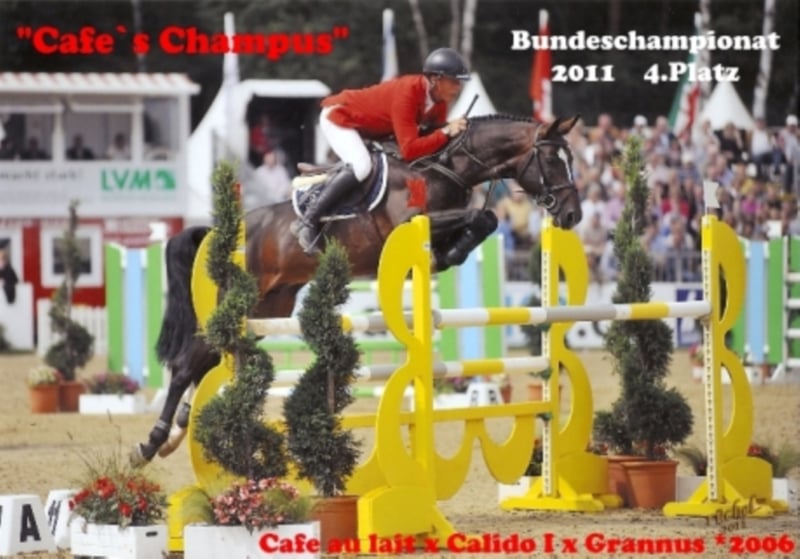 Giovane saltatore bello e colorato, proveniente da un accoppiamento collaudato. La stessa madre ha avuto successo fino al livello avanzato (S*) nello sport amatoriale. Come i suoi fratelli, è già estremamente talentuoso nelle sue prime prove di salto libero! (vedi video) Il suo tipico carattere da cafe au lait lo rende anche un ottimo cavallo amatoriale per lo sport e il tempo libero. Discende dal nostro vincitore di licenza "Cafe au lait", che da tempo attira l'attenzione con la sua progenie di incredibile successo nel dressage e nel salto ostacoli (visibile anche sul sito). Uno dei pochi tori che può vantare una serie di figli di successo in entrambe le discipline fino al livello avanzato! Cafe's Casimir" (Cafe au lait x Calido x Grannus) è stato il celebre vincitore del primo premio all'Asta Oldenburg Elite, è stato un vincitore di serie nel dressage di livello elementare e medio in giovane età, è stato un vincitore di serie nelle sue prime gare di dressage di livello avanzato (S) all'età di 7 anni e da allora ha vinto il suo primo livello avanzato (S**)! La cavalla di Kasselmann, Cafe's Caletta (Cafe au lait x Calato), si è già classificata in gare di dressage di livello avanzato (S) e ha vinto Gran Premi internazionali. Cafe's Matts è stato il secondo cavallo da dressage più costoso alle vendite miste estive di Oldenburg. Altri giovani cavalli nati da fattrici orientate al salto si sono già piazzati più volte in prove di dressage di livello avanzato (A) ed elementare (L) e sono straordinariamente forti e lucidi. Non c'è dubbio che la progenie di Cafe au lait sia convincente nel salto ostacoli fino al livello avanzato. Cafe's Champus, che ha ottenuto la licenza, è stato vice-campione del mondo dei giovani cavalli sotto la guida di Rene Tebbel ed è anche in scuderia con noi. Anche Cafe Junior (Cafe au lait x Silvio I) è stato autorizzato e allevato da noi e si è classificato a livello internazionale in gare di salto ostacoli di livello avanzato (S*). Cafe au lait è stato finalista al Bundeschampionat sotto la guida di Philipp Weishaupt e ha avuto successo fino al livello avanzato (S***) nel salto ostacoli, ma ha anche tre andature spettacolari ed è stato addestrato fino al livello avanzato (S) nel dressage. In forza a Paul Schockemöhle, ha già generato diversi saltatori ad ostacoli di successo internazionale, tra cui "Royce", vincitore del FEI CSI5* Rolex Grand Prix Wellington da 500.000 dollari. I nostri puledri ricevono quotidianamente mangime minerale e starter per puledri, EQUISTRO Haemolytan e Ipaligo Foal regolari, sverminazione e un maniscalco sono ovviamente obbligatori. Le fattrici ricevono anche mangimi speciali per cavalle, succhi di frutta, olio di lino e fieno ad libitum per tutta la gravidanza. Questo assicura che le nostre fattrici e la loro prole siano sempre in ottima salute! Possibilità di visione giornaliera. Altri cavalli giovani su richiesta, alcuni dei quali possono essere trovati negli altri annunci. Possibilità di permuta di fattrici adatte. Richieste di video ecc. in anticipo possibili solo via WhatsApp.