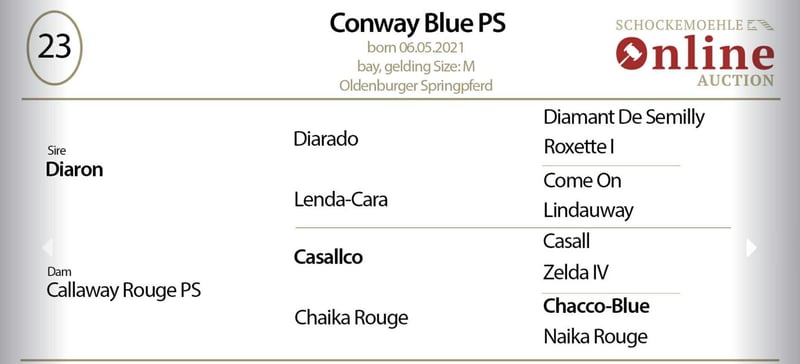 Zum Verkauf steht ein wunderschöner Oldenburger Springpferd-Gelding, geboren im Jahr 2021. Das Pferd hat eine Falbfarben (braune) Färbung und beeindruckende 168 cm Stockmaß. Es ist ein ausgezeichneter Springer mit großem Potenzial und somit ideal für einen Reiter, der nach einem ambitionierten Partner für den Sport sucht. Für weitere Informationen und zur Vereinbarung eines Besichtigungstermins freuen wir uns auf Ihre Kontaktaufnahme.