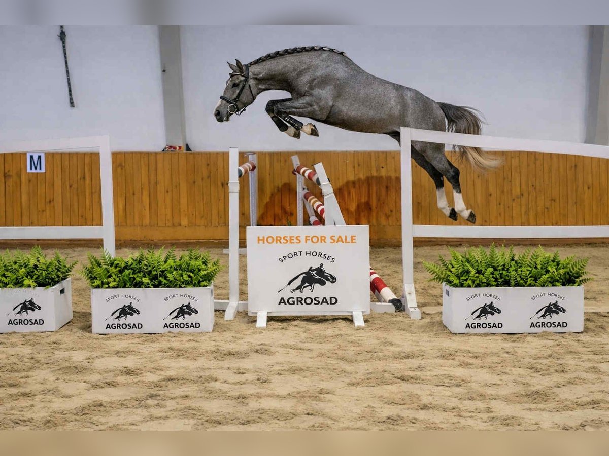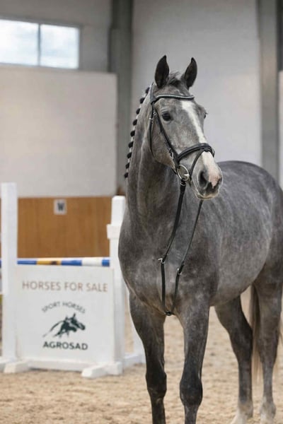 For sale: a beautiful Oldenburg gelding, born in 2022. This gray pony stands an impressive 16.8 hh and is an excellent jumper with great potential for the future. Perfect for those seeking a young, promising show jumping horse. Please contact us for more information!