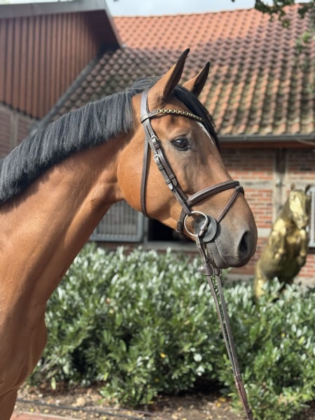 **Sales Advertisement: Oldenburg Show Jumper** For sale is a talented Oldenburg gelding, born in 2021. With a height of 169 cm and his appealing brown coat, he attracts all attention. This young gelding shows great potential in show jumping and is ready to prove himself in the competition scene. He possesses excellent technique and natural jumping ability, making him a promising partner for ambitious riders. He is well-trained, easy to handle, and demonstrates cooperation and reliability both in training and out on the trails. If you are interested or need further information, please feel free to contact me. Don't miss this opportunity to acquire a future champion!