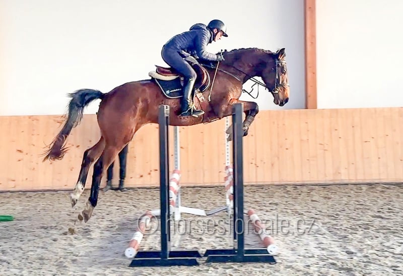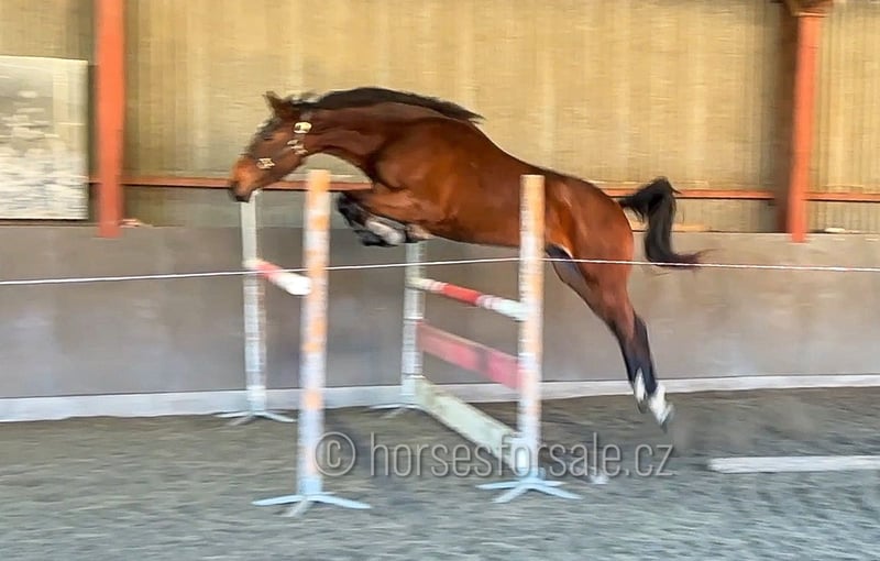 TOP LIMITED - future show jumping star Top Limited is an exceptional youngster with quality and scope. Has been trained since few months, can already jump a small course and is ready for his show debut. He shows not only scope, but first of all great brain and willingness. It is a very intelligent and cooperative youngster, is not looky or spooky, is going to develop into a great jumper in the future. His father Tallmann has been competing up to GP level, currently with a young rider in the saddle. Sound and easy going horse (x-rays available). More information or videos under +420602862723 Price range: 20-25.000€€ https://youtu.be/CBTqEND4Rtw Born: 2022, Height: 170cm, pedigree: Tallmann (Toulon) x Limited Location: 30 minutes from Prague, Czech republic. Central Europe. Transport can be provided. *** more horses on my website www.horsesforsale.cz ***