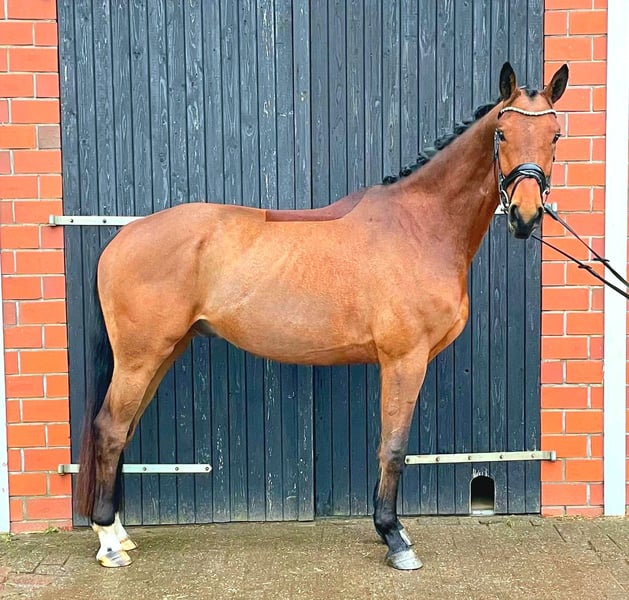 Dino is a 4-year-old gelding by Despacito out of Romanov Blue Hors / Aquillino. He stands approximately 16.1 hh. Gently raised by his breeders, he was brought into a training stable last November and has since been backed and lightly ridden. Dino impresses with his solid basic gaits and good rideability. Additionally, he demonstrates the willingness to learn and the necessary confidence. He is certainly developing into an expressive gelding suitable for the big arena. Character-wise, Dino convinces with his friendly and trusting nature, as well as his openness to new situations. Not only does he show promise in dressage, but he also impresses in free jumping. He is naturally sound and easy to load and shoe. A recent veterinary examination is available. Trying him under saddle is no problem; however, it should be kept in mind that Dino is still a young horse and therefore needs an experienced rider.