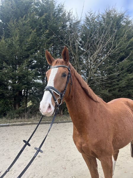 For sale is a 4-year-old, approximately 1.78 m tall gelding by Ogano out of Lord Weingard. Odin has been gently backed and shows himself to be well-behaved and uncomplicated under saddle in all three basic gaits. He has already confidently mastered some small jumps and demonstrates attentiveness and a willingness to learn. In daily handling, he is absolutely calm and friendly. Currently, he is kept in a gelding group during the day and in a box at night. He is also familiar with pasture turnout and being stabled with mares. Odin comes directly from the breeder and has been trained age-appropriately – a promising partner for sport and leisure. We are happy to send videos upon serious interest. A trial ride is possible by arrangement.