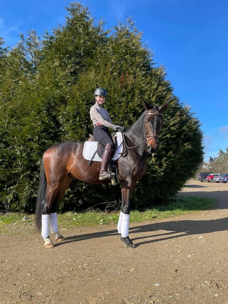 Well behaved youngster , easy to handle on daily basis Good balance and nice ridability ! Great prospect for the sport He is really a sweet horse, he likes cuddles and hack in the forest Perfect horse to enjoy and perform in the future