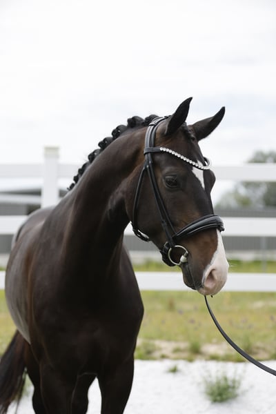 Dimaggio Fantastico is a approximately 4.5-year-old Oldenburg gelding, impressing with his exceptional rideability and three outstanding basic gaits. A highly modern, expressive, and particularly typy horse that immediately catches the eye in any environment. He has been trained gently and correctly according to his age, is backed and familiar with regular ground work. Dimaggio Fantastico is already ridden in the field at walk on a long rein and remains just as relaxed as during training in the indoor arena. Dimaggio Fantastico descends from excellent dressage bloodlines and a performance-tested lineage. Famous and successful relatives emphasize his potential: his brother Furore Fantastico, an approved Oldenburg stallion, has already won multiple dressage competitions up to S class. Also coming from the same performance-oriented breeding, Dimaggio Fantastico was born and raised at our stable and has been carefully backed by us. In daily handling, Dimaggio Fantastico always presents himself as friendly and uncomplicated: - Load-friendly - Well-behaved at the blacksmith - Familiar with ground work and rides at walk on a long rein An exceptionally beautiful, eye-catching young horse with excellent dressage bloodlines, from a top performance lineage — ideal for ambitious riders seeking a special partner for sport and training.