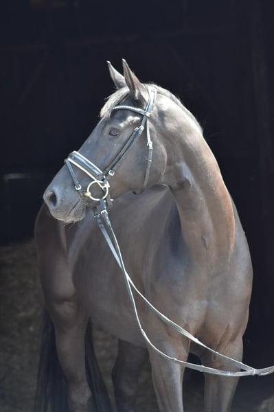Bueno is een in 2021 geboren zwarte ruin, afstammend van Best Buddy. De ruin beschikt over 3 zeer aansprekende basisgangen. Al aan het begin van zijn opleiding zijn uitstekende rij-eigenschappen en een geweldige werkhouding te herkennen. Een geweldige jongeling die alles in zich heeft om een partner voor de dressuurring te worden. Zijn vader Best Buddy is zelf zeer succesvol tot op hoog niveau en scoort in de dressuurring met betrouwbaarheid, expressie en opvallend goede basisgangen. Zijn zenuwsterkte en veelzijdigheid heeft hij bewezen en hij werd Bundeschampion in het mennen in 2023. Verder was hij in de discipline dressuur gekwalificeerd voor het Bundeschampionat. Bij interesse kunt u ons graag bellen. Wij zijn van maandag tot vrijdag van 08:00 tot 17:00 uur bereikbaar.