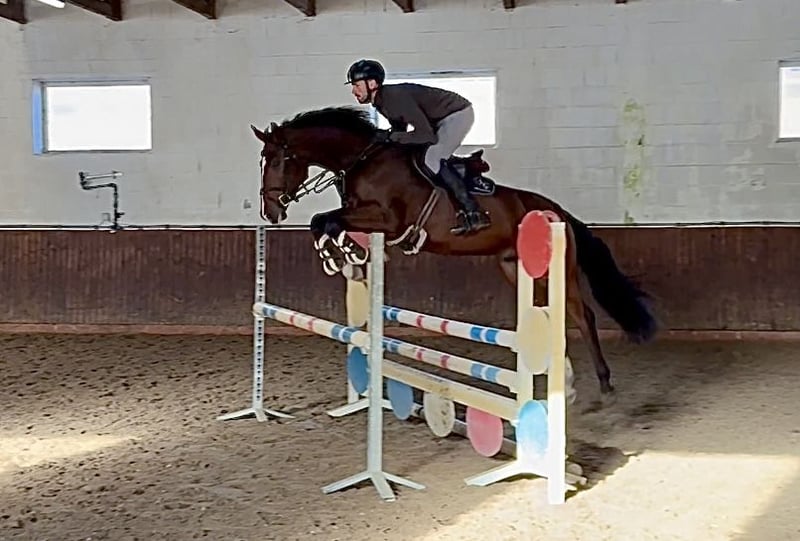 Dear prospective buyers, For questions or to arrange a viewing, please send us a WhatsApp message or an email. You can reach us on weekdays, preferably around midday. If that’s not possible, simply send a message and we will get back to you. We look forward to hearing from you! "Carl" is a very talented young horse who already demonstrates excellent scope over jumps and good manners. He has incredibly relaxed, solid basic gaits, which are also reflected in his work over fences, as he knows how to use his body very well. In terms of temperament, he is also a dream—always eager to please. He is very easy to handle and gets along well with other horses. An absolutely uncomplicated model with great potential for a future in high-level sport. He could also be very well suited as a hunter. Directly from the breeder. Good veterinary report.