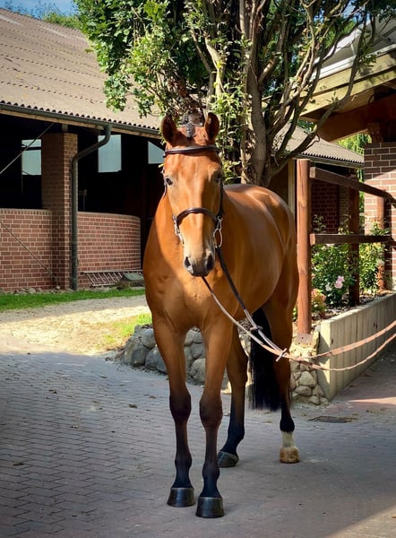 Na sprzedaż jest obiecujący i wyrazisty 4-letni wałach z najlepszymi predyspozycjami do wyższego sportu skokowego. Jest już doświadczony na zawodach i zdołał od razu zająć miejsca na podium. Prezentuje się z dużą kontrolą i zdolnościami podczas skoku oraz ma niesamowite podejście do pracy. Młody partner sportowy z dużą perspektywą - zarówno dla ambitnego amatora, jak i dla profesjonalisty.