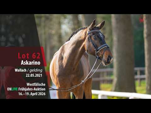 Ein hochsportlicher Springnachwuchs mit enormem Potenzial und beeindruckendem Vermögen bei exzellenter Technik. Askarino überzeugt mit idealer Bascule, kraftvollem Abfußen und viel Übersicht. Zuverlässigkeit und ausgeprägte Leistungsbereitschaft zählen zu seinen besonderen Stärken. Als bereits platzierter Springjuwel lässt er das Herz ambitionierter Springreiter höherschlagen und empfiehlt sich für eine vielversprechende Zukunft im Parcours. Alle Infos zum Auktionslot hier: https://onlineauction.westfalenpferde.de/de
