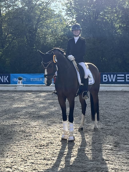 For Sale: Oldenburg Gelding – Perfect for Dressage! We are offering a stylish dark bay Oldenburg gelding, born in 2021. Standing at 17.2 hh, he impresses with his impressive size and elegant appearance. The gelding also demonstrates great talent and a strong willingness to learn. He is healthy, well-trained, and has a pleasant temperament. Friendly in handling and easy to ride, he makes a promising partner for ambitious riders. He has been successful in young horse classes as well as in A-level dressage competitions. With further training next year, he will be ready to compete in L-level dressage. Due to occasional napping, he is being sold at a significantly reduced price. Please feel free to contact me for more information or if you have any questions.