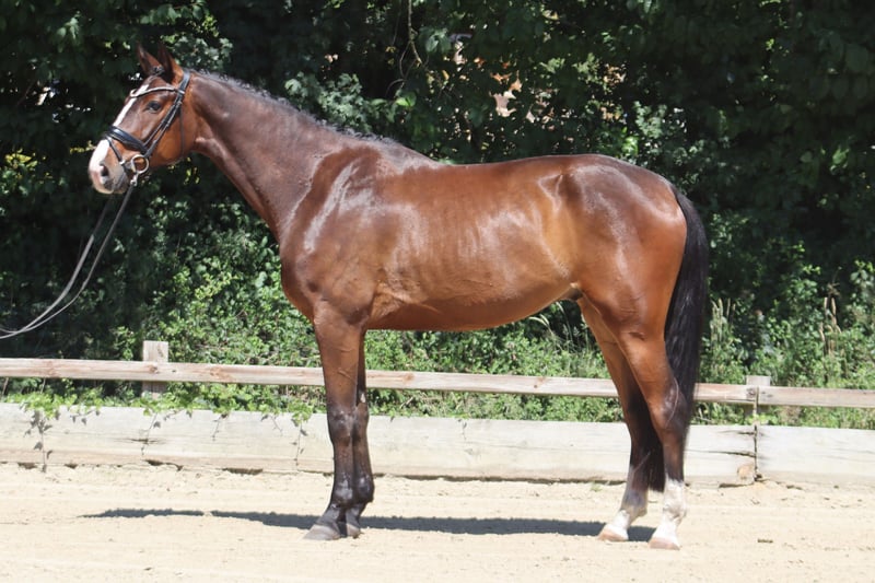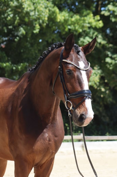 **Droomachtige ruin** Charmant dressuurpaardje in de dop – 4-jarige ruin (De Royal x Weltmeyer, 2021, 1,76 m) Te koop staat een volbloed en opvallende ruin, afstammend van De Royal x Weltmeyer, die nu al buitengewoon veel potentieel voor de dressuursport laat zien. Hij heeft langer dan anderen de tijd gekregen om rustig fysiek te groeien en toont zich sinds de eerste training onder het zadel van zijn beste kant: elastisch, taktzeker en met een indrukwekkende beweging. Zijn natuurlijke bergopwaartse aanleg en uitstekende rijbaarheid maken hem tot een echt toekomstpaard. Karaktertechnisch overtuigt hij door zijn aangename temperament – altijd braaf en zonder ongewenste gedragingen. Daarmee combineert hij talent en instelling, waardoor hij een ideaal partner is voor ambitieuze sportruiters. De merrie-moeder won de Sportschau (1A-premie) en behaalde hoge cijfers tijdens haar prestatieproef. Andere nakomelingen zijn al succesvol gepresenteerd in hogere klassen. Funkenflug: Intermediaire Schweden & Junior Tour Diamantenstern: M** USA First Edition: M* succesvol in Duitsland Een jong paard met perspectief dat wacht op verdere ontwikkeling in de dressuurring. Al hoog geplaatst in opbouwproeven en op weg naar dressuurpaarden L. Een goede röntgenkeuring zonder bijzonderheden ligt voorhanden. Voor vragen graag telefonisch contact: 015128776697 – Jana Kahrs Locatie: 28870 Ottersberg
