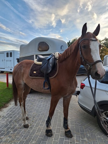For sale is this beautiful 2020 gelding. He is a son of Limbothello × Baldus. Limbothello is an excellent stallion successful in advanced classes, notable for his striking coloration, which he has also passed on here. The licensed stallion achieved scores of 9.5 in show jumping competitions. The gelding, approximately 1.64 meters tall, has inherited not only a great appearance but also a good character and impresses with his gentle, pleasant rideability. He is very well-behaved in handling, whether with adults or children during grooming and leading. This year, he competed in his first tournaments (Show jumping A* and A**) and impressed with his clear mind, allowing him to place directly. He is an excellent riding horse for beginners, but I could also see him in eventing. ✅️ Shoeing and loading trained ✅️ Safe in the terrain ✅️ X-ray images available from 2024