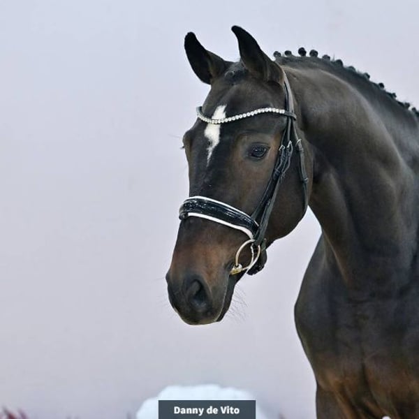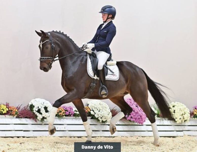 Danny de Vito presents himself here as a highly rideable dressage prospect with excellent basic gaits. Easy to handle and uncomplicated. His dam is the sister of the Vechta auction top seller Fürst Pückler v. Fürst Romancier, who was sold to a Swedish dressage stable.