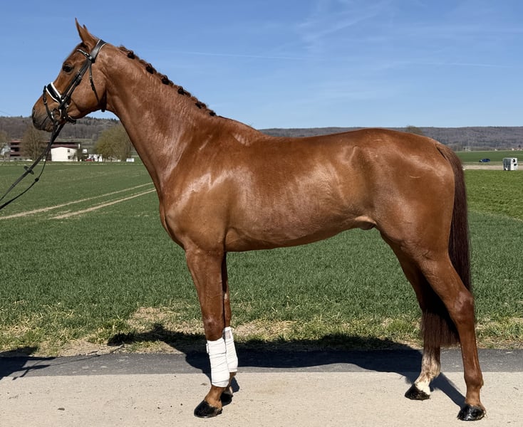 Sehr schöner und sehr moderner Wallach der mit drei guten Grundgangarten und einem hervorragenden Charakter ausgestattet ist. Er ist auf dem A - Niveau ausgebildet, zeigt sich unter dem Sattel sehr lernwillig und brav. Im Umgang sowie auch auf der Koppel ist er super verträglich und brav