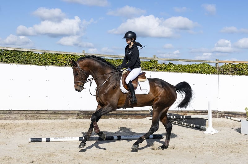 Very beautiful appearance; at first glance you see this is a complete horse. Well put together and therefore very comfortable to ride. Jumps with a lot of scope and good technique, with a notably strong hind leg. You will not easily find them more complete than this. Recently under saddle for 2 months. Sire Baloutaire PS – 1.60m level. Son of Balou du Rouet (1.50m) from the line of Baloubet du Rouet (1.60m), proven top sire. Dam Channy – competed at 1.35m level, daughter of Chacco-Blue (1.60m). Damline Granddam Conny – daughter of Converter I (1.40m). From this line: Lily – 1.40m Wathnan Cornest – 1.60m Conny Blue PS – 1.45m Further in the line: Charielle – 1.60m Barracuda – 1.50m Casus Bibendi – 1.60m Strong international sport line with multiple horses at 1.40m–1.60m level.