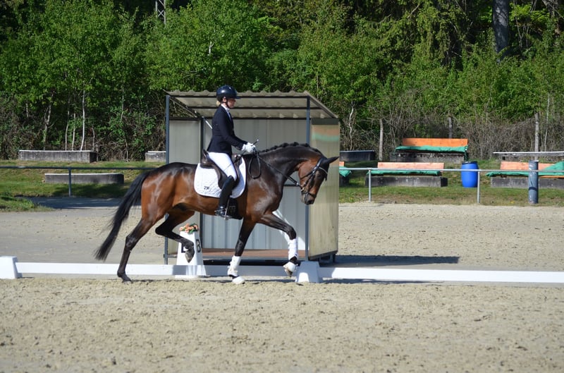 Voici un jeune cheval moderne, directement issu d’élevage, à vendre. Zino est très proche des humains et souhaite toujours leur plaire. Il a été doucement monté en dressage et a déjà acquis une certaine expérience en compétition. Toujours noté avec de bonnes notes, il a déjà obtenu plusieurs classements dans des épreuves pour jeunes chevaux. Il se transporte aussi bien seul qu’avec d’autres chevaux, de manière simple, et gère très sereinement la situation en compétition. Les radiographies datant de 2022 sont disponibles et peuvent être refaites sur demande. Si vous recherchez un cheval de grande qualité avec un caractère doux, vous êtes au bon endroit. Actuellement en pause de compétition, il est en préparation pour la saison à venir et peut être essayé à tout moment.