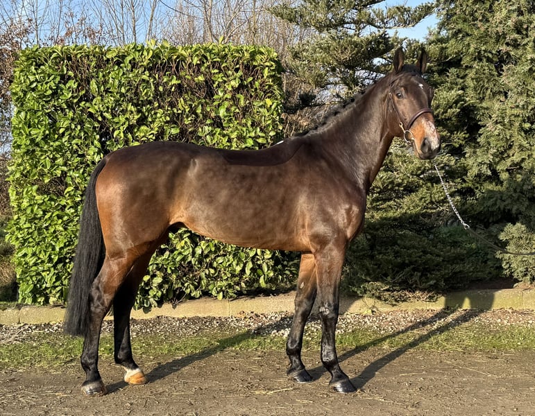 Puissante jument avec beaucoup de potentiel. Âgée de 6 ans, 1,68 m. Holsteiner par Conthargos x Clinton x For Pleasure. Montre beaucoup de qualité, est douce et possède un caractère agréable. Toujours volontaire pour aller de l'autre côté. Expérience en concours jusqu'à 1,00 m, se comporte très bien. N’est ni curieuse ni effrayée. Actuellement en entraînement avancé et peut progresser jusqu’à 1,10 m. Facile à monter en dressage. Pas forte, saute également agréablement ses obstacles. Réagit bien aux aides. ✅ En bonne santé et sans défauts. 🎥 Vidéo disponible. ☎️ 0031-610197456