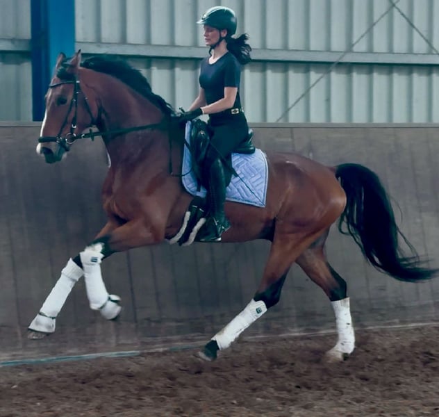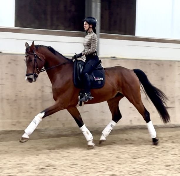 Dieser ausdrucksstarke Wallach von Escolar vereint herausragende Grundgangarten mit top Rittigkeit und allerbesten Charaktereigenschaften! Durch seine tolle Arbeitseinstellung bereitet er sehr viel Freude in der täglichen Arbeit und macht Ausbilden einfach. Seine Qualität konnte er bereits auch auf Turnier mit zahlreichen Erfolgen bis Dressurpferde L unter Beweis stellen. Zudem ist er ein sehr menschenbezogenes Pferd, welches maximal verschmust ist und frei von jeglichen Unarten im Umgang sowie unterm Sattel. Egal ob auf Turnier, im Auswärtstraining oder auch im Gelände, er ist stets zuverlässig und brav! Ideal für ambitionierte Reiter, die ein unkompliziertes und zugleich vielversprechendes Nachwuchspferd mit Perspektive fürs große Viereck suchen! Aufgrund seines ehrlichen Wesens und seiner Leichtrittigkeit auch für schwächere, ängstliche Reiter geeignet. Auf Wunsch können all unsere Pferde auch für eine Übergangsphase mit Beritt und Reitunterricht bei uns bleiben. Zum Schutz unserer Pferde berechnen wir eine Probereitgebühr von 45€. Weitere Eindrücke auf unseren Socialmedia Kanälen: Insta: PREcaroPferde https://www.instagram.com/precaropferde?igsh=MThzaDBmNTNpdW1mMg%3D%3D&utm_source=qr Facebook: Carolin Nesarajah https://www.facebook.com/share/1BzEKN6QFs/?mibextid=wwXIfr Für weitere Fragen oder um einen Probereittermin zu vereinbaren melden Sie sich gerne jederzeit unter der 015202833968