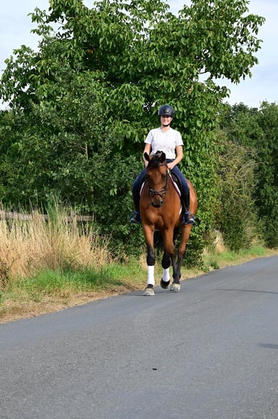 Unser Alegro bringt genau das mit, wovon man als Reiter träumt. Er besitzt ein feines Wesen, einen 1 A Charakter und ist total liebenswert. Er hat drei gute Grundgangarten, steht fein und angenehm an den Hilfen und geht beinah von selbst durchs Genick am Zügel. Alegro ist allzeit bereit: Egal ob Dressur oder Springen, Zuhause, Turnier oder im Gelände- er ist ein treuer Begleiter in jeder Situation. Schmiede- und verladefromm. Er wird nur in ein 5*Sterne-Zuhause abgeben. Aufgrund von Befund nicht für den gehobenen Springsport (M-Springen) geeignet. Preis 10. 🥕🥕🥕