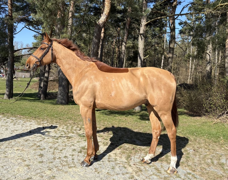 For sale: an Oldenburg show jumping gelding, born in 2019, with an impressive height of 172 cm (16.1 hh), sired by I’m Special de Muze. This chestnut impresses with his talent and honest work ethic. He is ready for immediate competition and is very well-behaved in handling. He is also great to ride in the terrain. The gelding demonstrates a positive attitude and is suitable for both ambitious young riders and experienced show jumpers. A reliable partner who captivates with his charm and potential. Current good-quality X-rays are available. He is only offered at this price because he unfortunately has a knot! This does not affect his health or performance in any way.