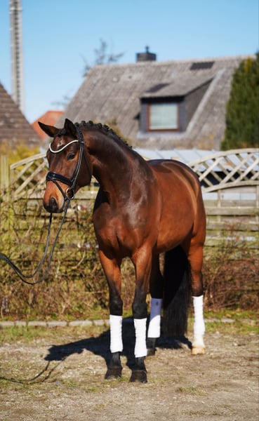 Zum Verkauf steht dieser typvolle Sohn des Belissimo. Er überzeugt mit drei sehr guten Grundgangarten: einem taktsicheren Trab, einem großzügigen Schritt sowie einer ausdrucksstarken Bergaufgaloppade. Aktuell befindet er sich auf dem Weg in Richtung Dressurpferde L-Niveau. Das Reiten auf dem Platz, sowie im Gelände ist ihm bereits vertraut. Im Umgang zeigt er sich bei uns stets unkompliziert und auch in der Herde als verträglich. Keine Mails, nur Anrufe. Preis zzgl MwSt Angaben ohne Gewähr