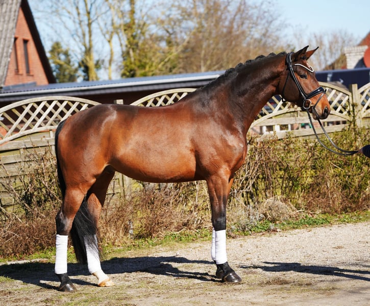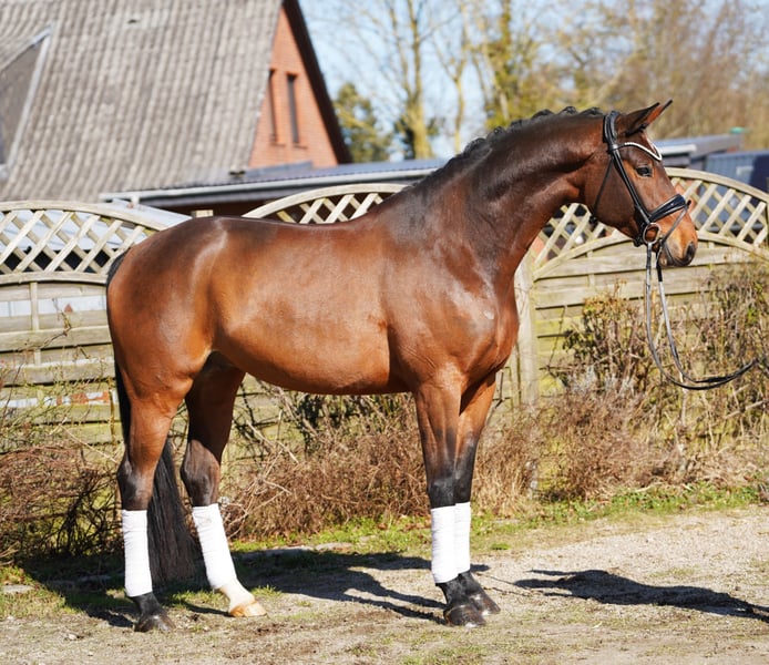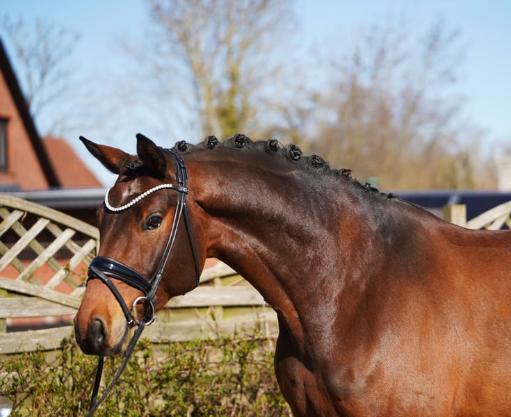 For sale is this typy son of Belissimo. He impresses with three very good basic gaits: a rhythmical trot, a spacious walk, and an expressive uphill canter. He is currently on his way to achieving dressage horse L-level. Riding him both on the arena and in the field is already well familiar to him. In handling, he is always straightforward with us and also gets along well within the herd. No emails, only phone calls. Price plus VAT. Information without guarantee.
