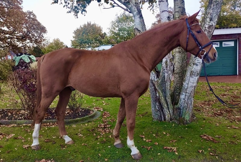 Oldenburger | Wallach | 2018 | 1,65m Abstammung Best of Gold × Alabaster Dieser hübsche dressurbetonte Wallach sucht ein neues liebevolles Zuhause. Er geht gut in allen drei GGA und macht auch schon brav einen kleinen Sprung unter dem Sattel. Auch im Umgang brav und verschmust. Altersbedingt sucht er aber einen erfahrenen & konsequenten Reiter. Perfekt für den ambitionierten Freizeitsport. Hufschmied und Osteo sind regelmäßig da, Hänger fahren ist ebenfalls kein Problem. Kennt Box wie auch Offenstall. Wir suchen ein neues Zuhause für ihn da ich einfach zu wenig Zeit für ihn habe. Er kann jederzeit in der Halle probegeritten werden. Videos unter dem Sattel und beim Sprung können gern zugeschickt werden. Platz vor Preis.