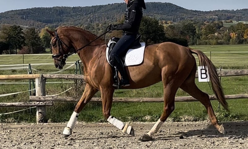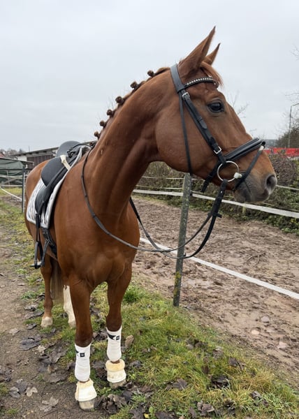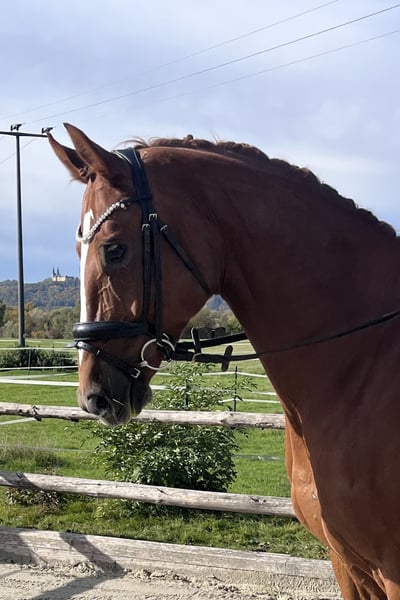 Wunderschöner leichtrittiger 8 jähriger Oldenburger Wallach von Marc Cain x Wolkentanz 166 cm , super schön zu reiten , unglaublich menschenbezogen , möchte immer mitarbeiten . Mit einem schönen , schwungvollen Trab ausgestattet. Er ist auf einem guten L/ M Niveau geritten , geht alleine oder mit anderen ins Gelände , lässt sich sehr brav longieren , ist barhuf und top beim Schmied ! Er macht Zirkuslektionen und brennt darauf weitere zu lernen , da ihm das sehr viel Freude bereitet und er das echt toll findet ! Im Umgang ein Traum , immer gut gelaunt und freundlich ! Gute klinische AKU und Röntgen vorhanden ! Wer diesen tollen Kerl kennenlernen möchte , gerne melden 🐎 Standort 96215 Lichtenfels Preis 165🥕🥕