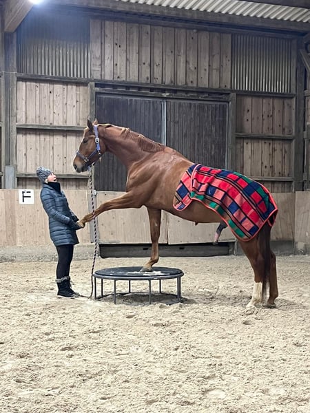 Hermoso caballo de 8 años, Oldenburger, de 166 cm, con paso suave y ligero, hijo de Marc Cain x Wolkentanz. Muy fácil de montar, increíblemente sociable y siempre dispuesto a colaborar. Equipa un trote bonito y enérgico. Ha sido montado en niveles de L/M, puede salir solo o con otros al campo, se deja longear con mucha paciencia, es de casco duro y está muy bien cuidado por el herrador. Realiza ejercicios de circo y está muy motivado para aprender más, ya que le encanta y lo encuentra muy divertido. En el manejo, es un sueño: siempre de buen humor y amigable. Se dispone de un buen informe clínico y radiografías recientes. Quien quiera conocer a este gran compañero, ¡que no dude en contactarnos! 🐎 Ubicación: 96215 Lichtenfels Precio: 165🥕🥕