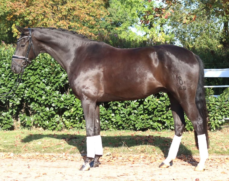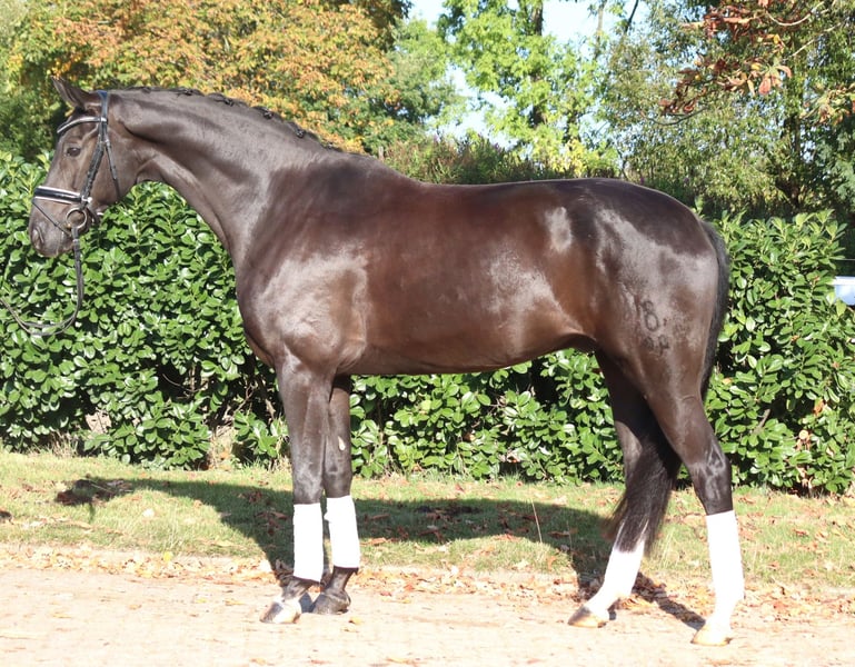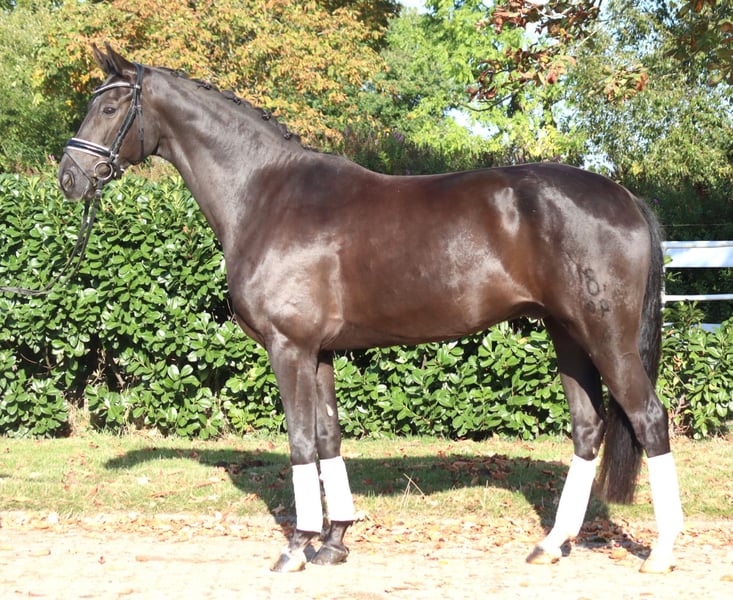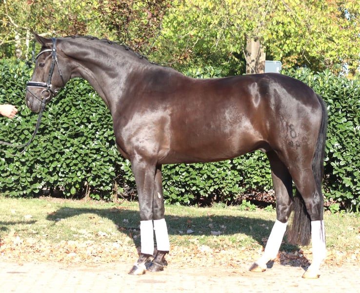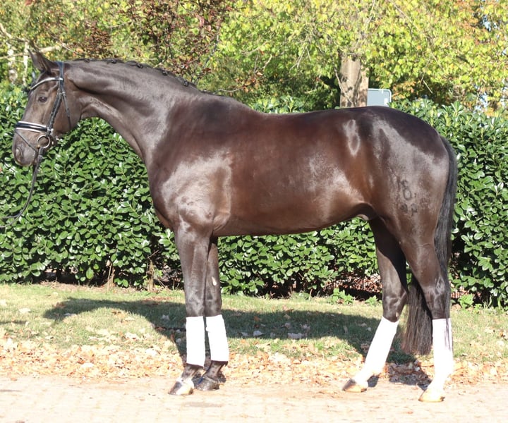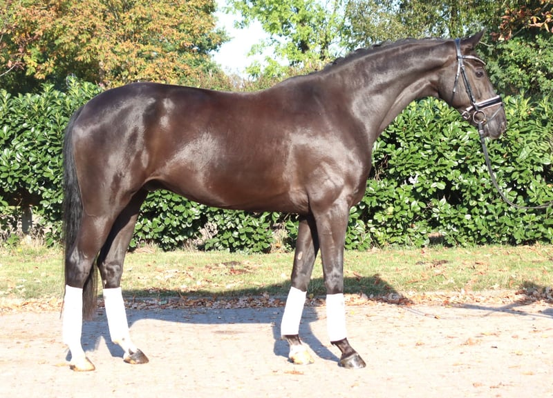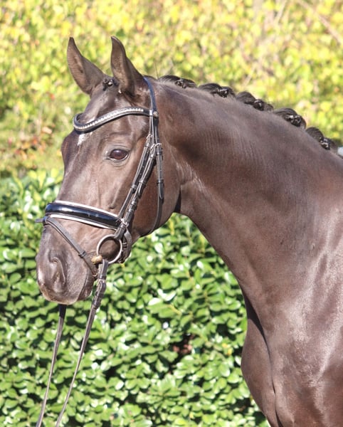 Charming 8-year-old gelding by Fürst Romancier out of Diamond Hit, with three very good basic gaits. He has been ridden so far by amateur riders at L-level but shows potential for more. This handsome gelding is very well-behaved in handling and is ready to be further developed. Price plus VAT. Inquiries only by phone; emails will not be answered.