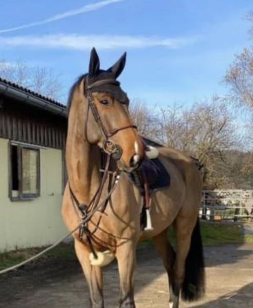 For Sale: Oldenburg Show Jumping Horse – Gelding, born in 2017 We are offering an impressive Oldenburg show jumper, born in 2017. With his elegant dark bay coat and a height of 17.8 hands, he is a true eye-catcher both visually and athletically. The gelding has solid jumping talent and demonstrates great potential in the arena. He is well-trained but requires a confident rider due to his sensitive nature – not suitable for timid or inexperienced riders! X-rays from November 2022 are available. He has never been ill or injured, is fully in work, and ready for immediate use. Please feel free to contact me for more information or to arrange a viewing. He will only be placed in the best hands.