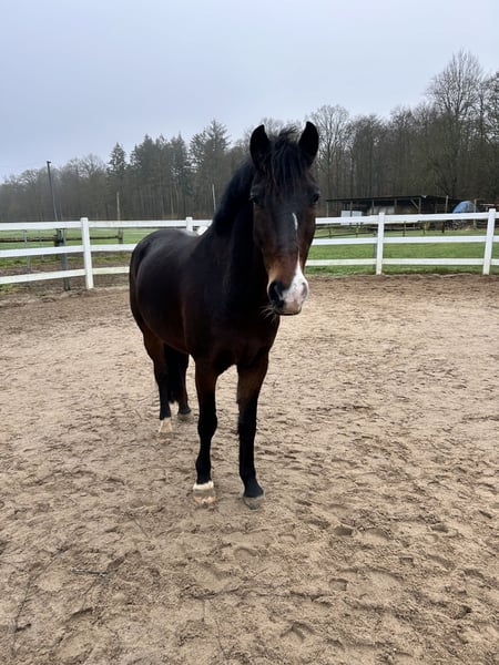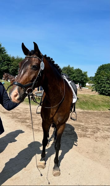 Charakterstarker Oldenburger-Mix Wallach sucht liebevolles neues Zuhause Zum Verkauf steht ein hübscher dunkelbrauner Oldenburger-Mix Wallach, geboren im Mai 2017, ohne bekannte Abstammung. Mit seinem freundlichen Wesen, seiner Arbeitsfreude und seinem ansprechenden Exterieur weiß er schnell zu überzeugen. Mit einem Stockmaß von ca. 161 cm ist er ein ideales Umsteigerpferd für Junioren oder ein toller Partner für den ambitionierten Freizeitreiter. Berti ist äußerst menschenbezogen, möchte seinem Reiter stets gefallen und zeigt sich im täglichen Umgang sehr liebenswert und kooperativ. Ausbildung & Einsatz Regelmäßig und solide gearbeitet Teilnahme an Lehrgängen Bereits Turnierluft geschnuppert mit seiner Reitbeteiligung Dressurmäßig sicher auf gutem A-Niveau, erste L-Lektionen vorhanden Kennt Freiarbeit und zeigt dabei große Motivation Geht alleine ins Gelände Freispringen bekannt Im Springen benötigt er anfangs etwas Motivation, zeigt dann aber Freude und Einsatz Haltung & Gesundheit Läuft barhuf Seit Geburt in Offenstallhaltung Zähne und Physiotherapie zuletzt im Oktober 2025 gemacht Muss getreidefrei gefüttert werden – bislang absolut problemlos Berti ist ein ehrliches, feinfühliges Pferd mit viel Potenzial, das sich einen liebevollen Menschen wünscht, der Freude an seiner weiteren Ausbildung hat und seine Motivation zu schätzen weiß. Bei Interesse oder weiteren Fragen freuen wir uns sehr über Ihre Kontaktaufnahme.