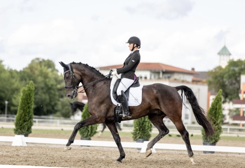Verkaufe eleganten, lieben Oldenburger Wallach Zum Verkauf steht ein beeindruckender Oldenburger Wallach, geboren im Jahr 2016. Seit Geburt ist Mini in unserem Besitz. Mini wurde zusammen mit meinem Trainer von mir bis S ausgebildet. Er ist bis M** platziert und S vorgestellt. Wir sehen ihn im M Bereich da ihn die S Lektionen doch schwer fallen. Fliegende Wechsel springt er sicher. Bei uns lebt er im Offenstall. Reine Boxenhaltung kommt nicht in Frage. Der Umgang mit ihm ist freundlich und unkompliziert. Er geht alleine auf den Hänger. Auch auf dem Turnier ist er alleine zu handeln. Er ging mit unserer Tochter auch schon Führzügelklasse und lies sich auch ausgebunden von ihr reiten. Er ist ein sensibles Pferd und daher nicht für reine Anfänger geeignet. Wir trennen uns schweren Herzens und nur wenn Alles passt, da wir leider einfach zu viele Pferde haben und diesen zeitlich nicht mehr gerecht werden können. Bei Interesse oder für weitere Informationen stehe ich gerne zur Verfügung. Besichtigung und Proberitte sind nach Vereinbarung möglich.