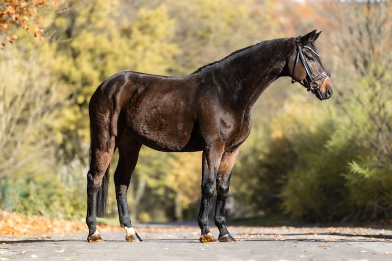 For sale is BOMBASTICO, a very special 9-year-old gelding by Belissimo, standing approximately 173 cm (17.1 hh) with a beautiful dark bay coat. With his kind gaze and gentle, affectionate nature, he quickly wins hearts. He is a true sweetheart, very people-oriented, seeking closeness, and impressing with his calmness and friendliness in daily handling. A horse that simply wants to do everything right and gives his rider a truly good feeling. Due to the previous owner's lack of time, he is currently in a gentle muscle-building phase. At the moment, he is mainly ridden in a forward-downward frame, which he performs patiently, diligently, and with a very pleasant attitude. He has a solid basic education and consistently shows willingness to learn and cooperation under saddle. In the stable routine, he is an absolute treasure. He stands quietly tied up in the aisle, is uncomplicated in handling, and is very social and well-behaved when interacting with other horses. He already knows free jumping and approaches it calmly and relaxed, without haste or stress. This large-framed gelding is ideally suited as a leisure horse for higher-level riding. He is the perfect partner for riders seeking a reliable, sensitive, and balanced horse with whom they can enjoy relaxed riding and also continue to develop. With further training, he has great potential and will surely bring his owner lots of joy, trust, and wonderful shared moments. He is familiar with dogs and tractors. Location: 53578 Windhagen. If you are interested or have questions, we look forward to hearing from you – 0176-82205841 A meeting is possible almost at any time. For a viewing and test ride, we charge a flat fee of €30. Of course, there is also the option to have your dream horse transported directly to your home.