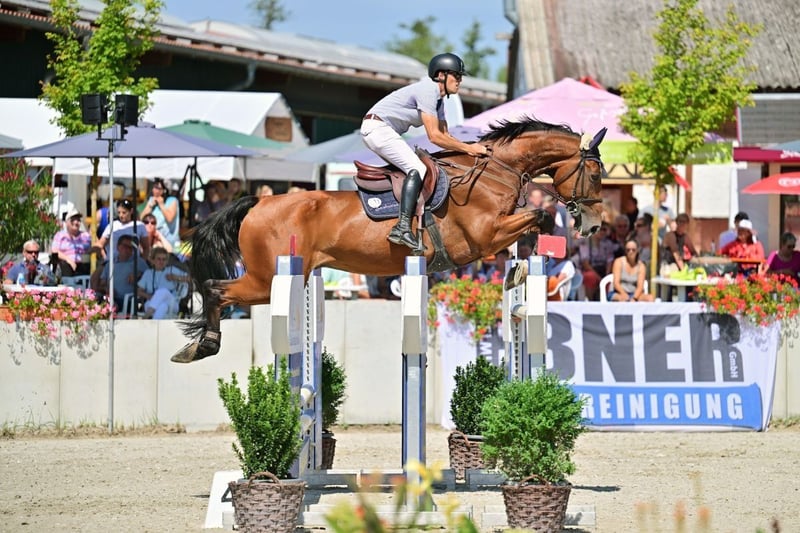 Zum Verkauf steht „Crystal Blue ST“, ein 9-jähriger brauner OS-Wallach von Chacoon Blue x Ludwigs As, Stm. ca. 176cm Crystal steht bereits seit er 4 Jahre alt ist bei uns und hat bereits in jungen Jahren sein großes Talent offenbart. So war er hoch erfolgreich in der Springpferde-Tour und konnte sich im Alter von 6 Jahren für das Bundeschampionat qualifizieren. Darüber hinaus sammelte er erste Platzierungen in der internationalen Youngster-Tour. Auch den Sprung in den schweren Springsport hat er mühelos gemeistert. So war er bereits 8-jährig siegreich in Springen der schweren Klasse. Auch in diesem Jahr platzierte er sich zum Saisonbeginn erneut in der S-Klasse und ist somit direkt startklar für die nächsten Turniereinsätze. Crystal überzeugt vor allem mit seinem schier grenzenlosen Vermögen und seinem Mut - für ihn ist kein Sprung zu hoch, kein Oxer zu breit. Bei weiterer Ausbildung und Förderung sind ihm keine Grenzen gesetzt, sodass er sich im Laufe der nächsten Jahre bis in den S***-Bereich entwickeln kann. Was das Handling anbelangt, braucht Crystal einen erfahrenen Reiter, der ihn im Parcours kontrolliert bekommt. Er wird gern etwas stark, sodass er für einen schwächeren Reiter nicht geeignet ist. Gleichzeitig bringt er abstammungsgemäß über Chacco Blue die nötige Power für den Top-Sport mit - man muss seine Energie nur in die richtigen Bahnen gelenkt bekommen. Im Umgang ist Crystal ein sehr freundliches Pferd - schmiede- und verladefromm, verträglich mit anderen Pferden. Er ist kerngesund und voll im Training. Aus privaten Gründen zu verkaufen. Weitere Videos gerne auf Anfrage. Gerne dürfen Sie Ihr Pferdegesuch auch auf unserer Website eingeben und wir leiten Ihnen passende Verkaufspferde weiter: https://www.seahorse-boxbrunn.com/seahorse-sales