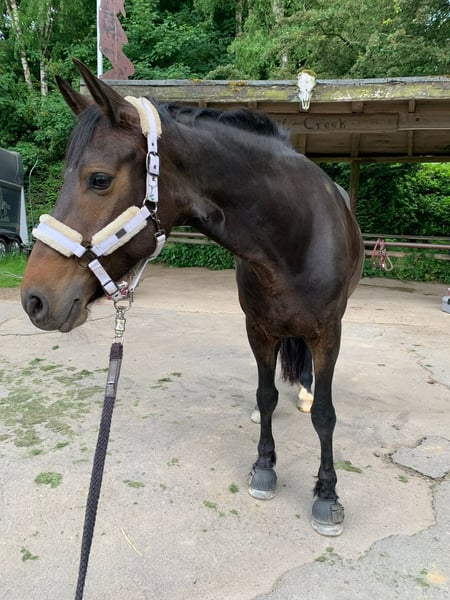 Schweren Herzens und nur, wenn es wirklich zu 1000% passt, verkaufe ich meine 10 Jahre alte Friesen -Oldenburger Stute (ca. 1,66 m). Sie ist ein sensibles, charakterstarkes Pferd, das eine Bezugsperson und eine klare Führung sucht und braucht, die mit Gefühl, Geduld und Klarheit arbeitet. Sie liebt Ausritte (in der Gruppe unerschrocken, alleine nach Eingewöhnung und routine entspannt), Bodenarbeit und Zirzensik. In der Arbeit möchte Sie verstanden werden und zeigt deutlich, wenn ihr etwas zu viel wird. Dann braucht Sie jemanden, der ruhig, fein, aber konsequent bleibt. Deshalb kein Anfängerpferd. Sie hatte noch nie eine Kolik, eine AKU ist nicht vorhanden. Was Sie benötigt: - Viel Heu/Heulage - Täglicher, ausgiebiger Auslauf in der Herde - Offenstallhaltung oder großzügige Paddock box - Jemand, der Ausritte und Bodenarbeit genauso liebt wie sie - Sie möchte ein Familienmitglied sein und nicht "nur ein Reitpferd" Sonstiges: - Sie kennt Hunde, Ziegen, Schafe, etc. - Sie kennt Straßenverkehr (Traktoren, Motorräder, etc.) - Sie ist Schmiedefrom - Verladefrom aber nur bei Transportern, bei Anhänger benötigt es training - Hat keine Unarten wie Steigen oder beißen - Dressur auf A Niveau - Springt gerne, bisher nicht höher als E Niveau mangels Reitererfahrung - kennt Halsring reiten etc. Zubehör kann mit erworben werden (Diverse Regen-, Winterdecken, Sattel, Trense etc.) Sie wird als Freizeitpartnerin abgegeben - zum gemeinsamen Lernen, Spaß haben und Genießen, nicht als Sportpferd für die Tägliche Arbeit unterm Reiter. Ich wünsche mir ernstgemeinte, wertschätzende Anfragen mit kurzer Vorstellung: - Wer bist du? - Wo würdest du Sie einstellen, Haltung? - Was möchtest du mit ihr gemeinsam erleben? Ich freue mich auf eure Nachrichten, der Preis ist VHB und wird hinter einem guten Zuhause gestellt!